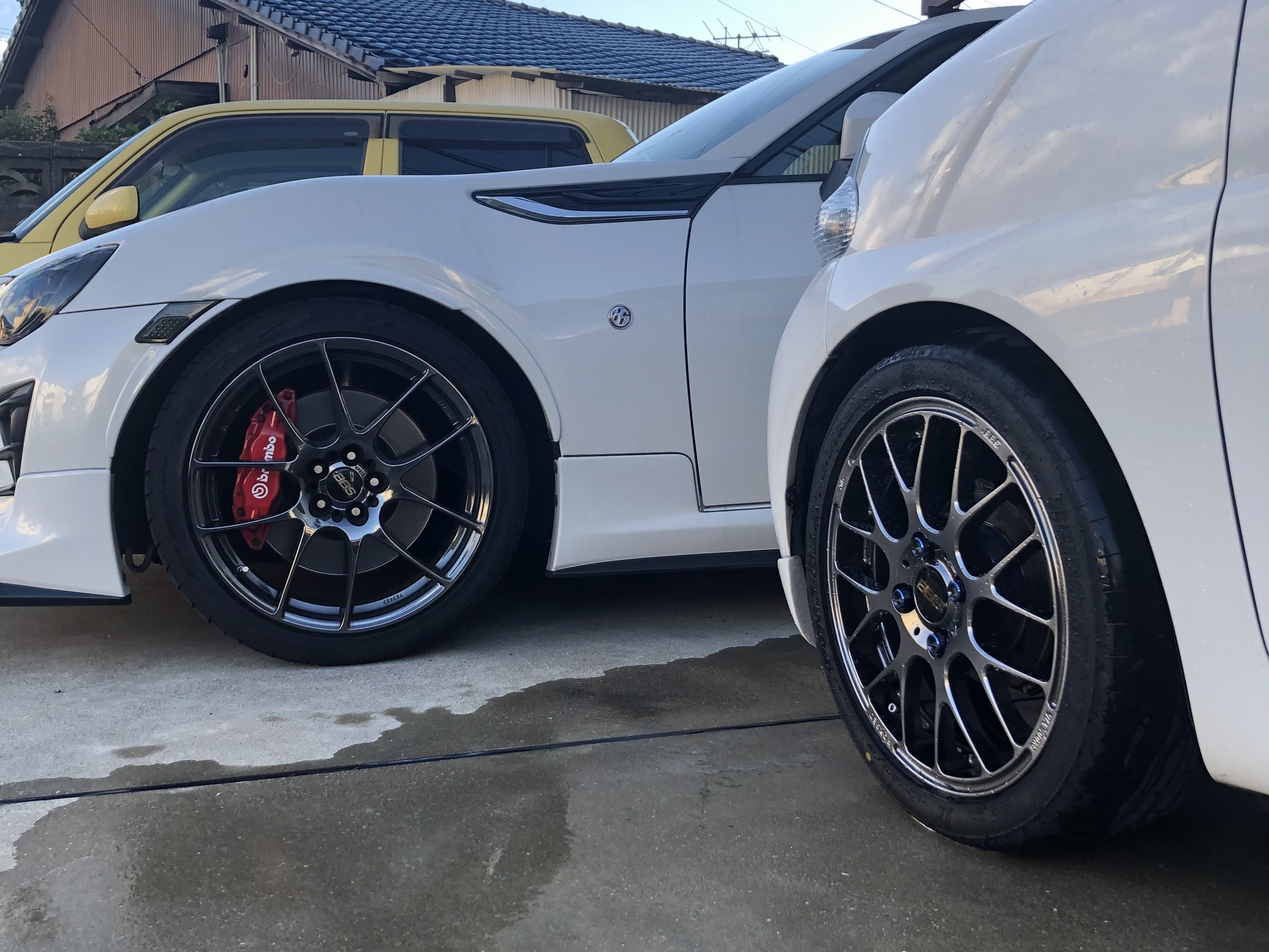 家の前で洗車をしている時に車を並べて夫婦でBBSだねって言って撮った1枚! キレイな景色と撮るのも良いけどこういう何気ない普通の毎日も良い。これからも変わらずにBBSが大好きな夫婦でいよう。