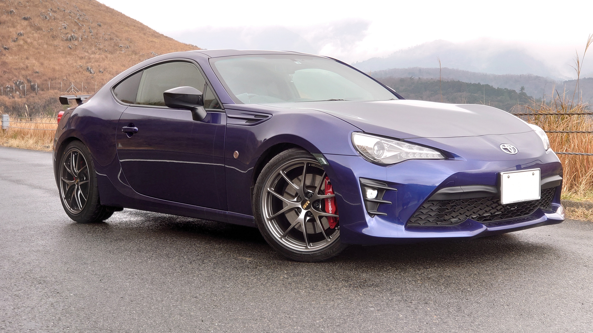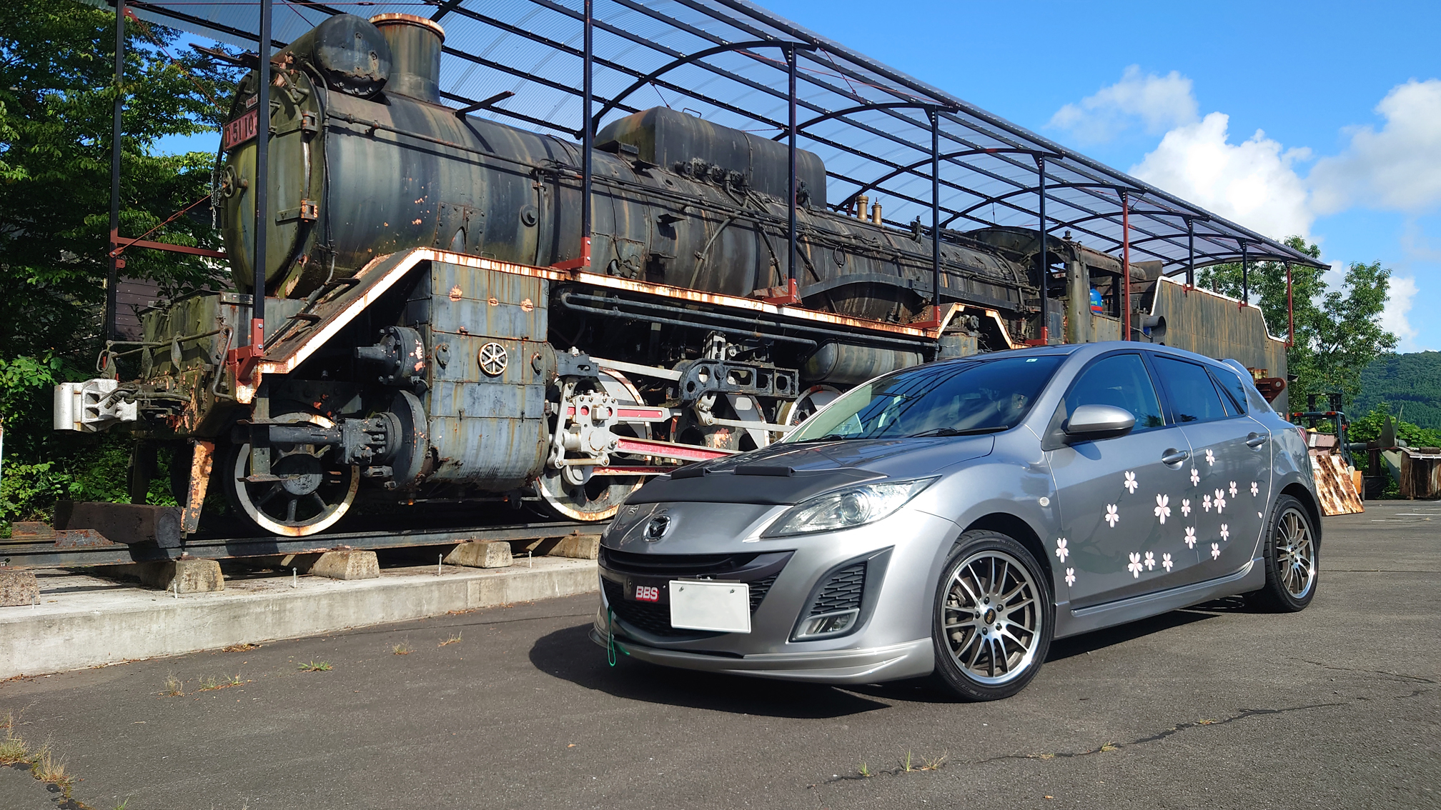ビーナスラインにて。ボディカラーがガンメタなので、より全体に一体感が出ました。車体は20万キロを越えていますが、BBSのお陰で引き締まって見えるので、走っても眺めても大満足です(^^)