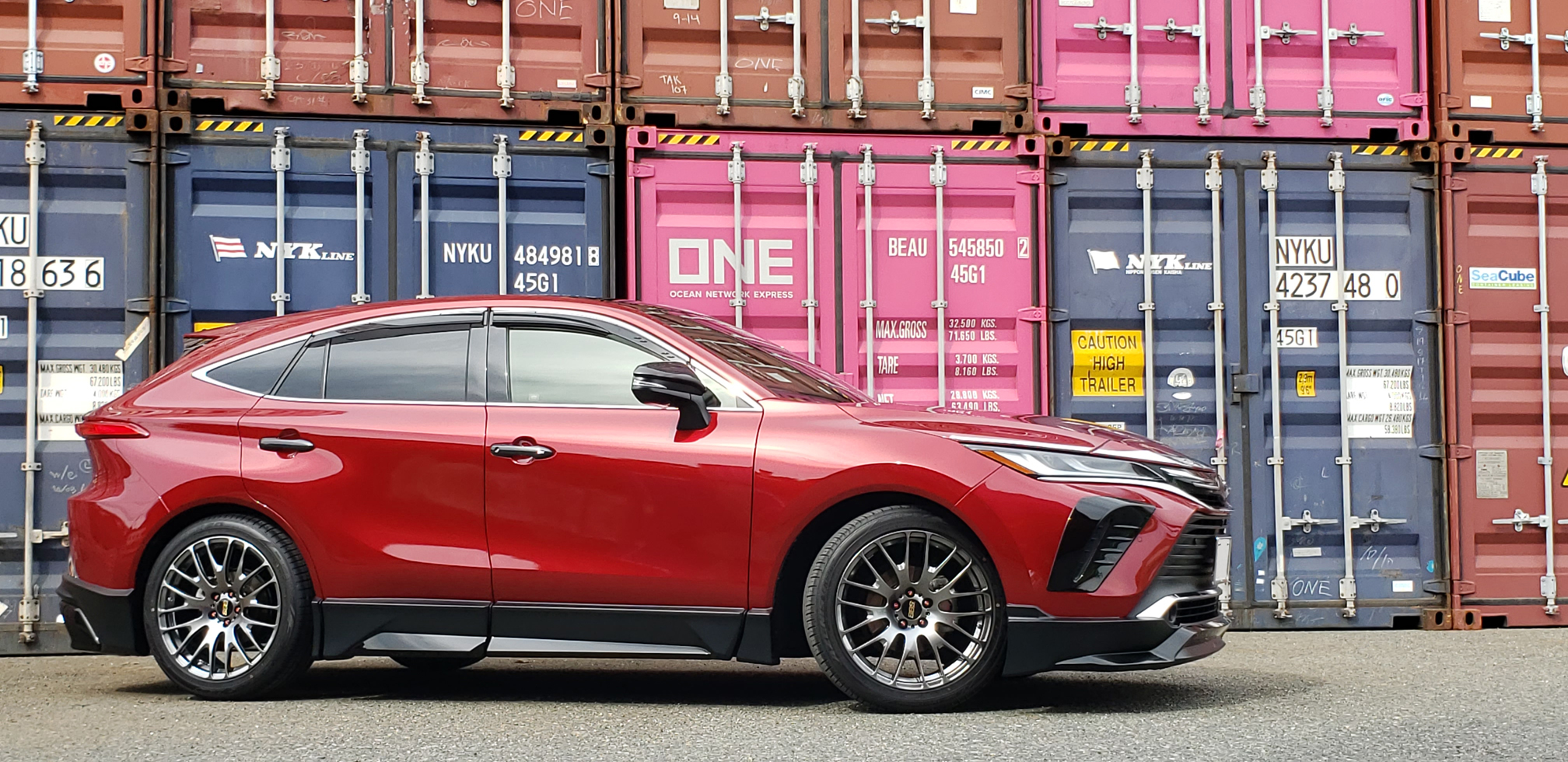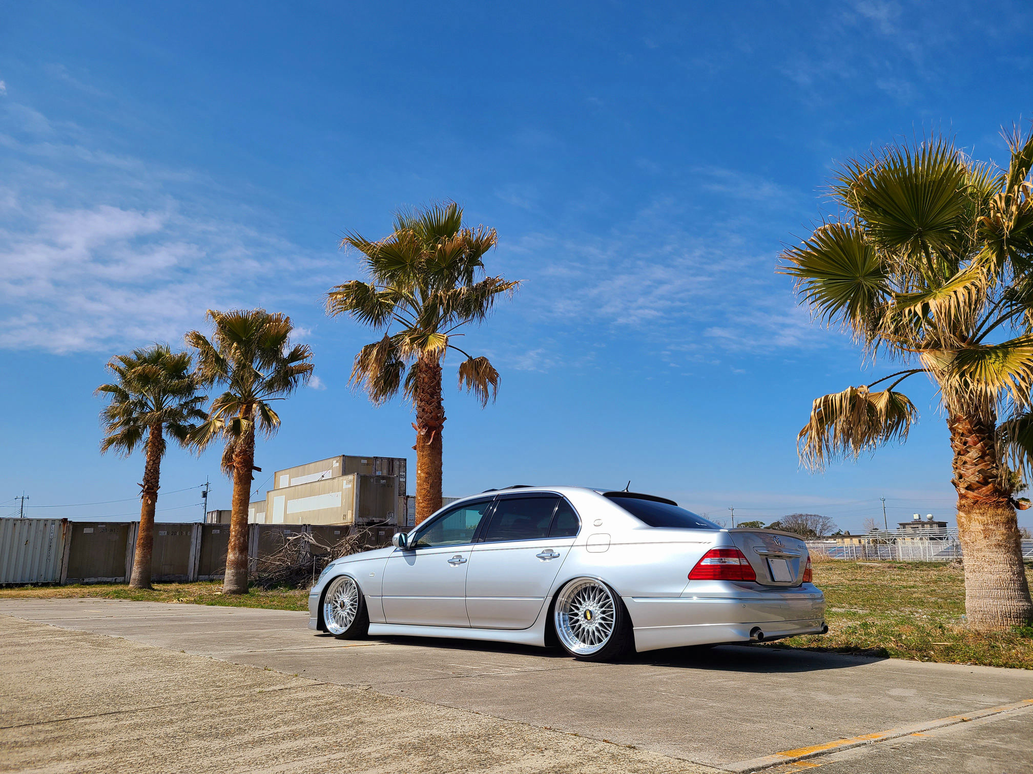 コンテナをバックにBBSが映えます。ハイクオリティは言うまでもなく、走行性能がアップしたのが一番の効果です。