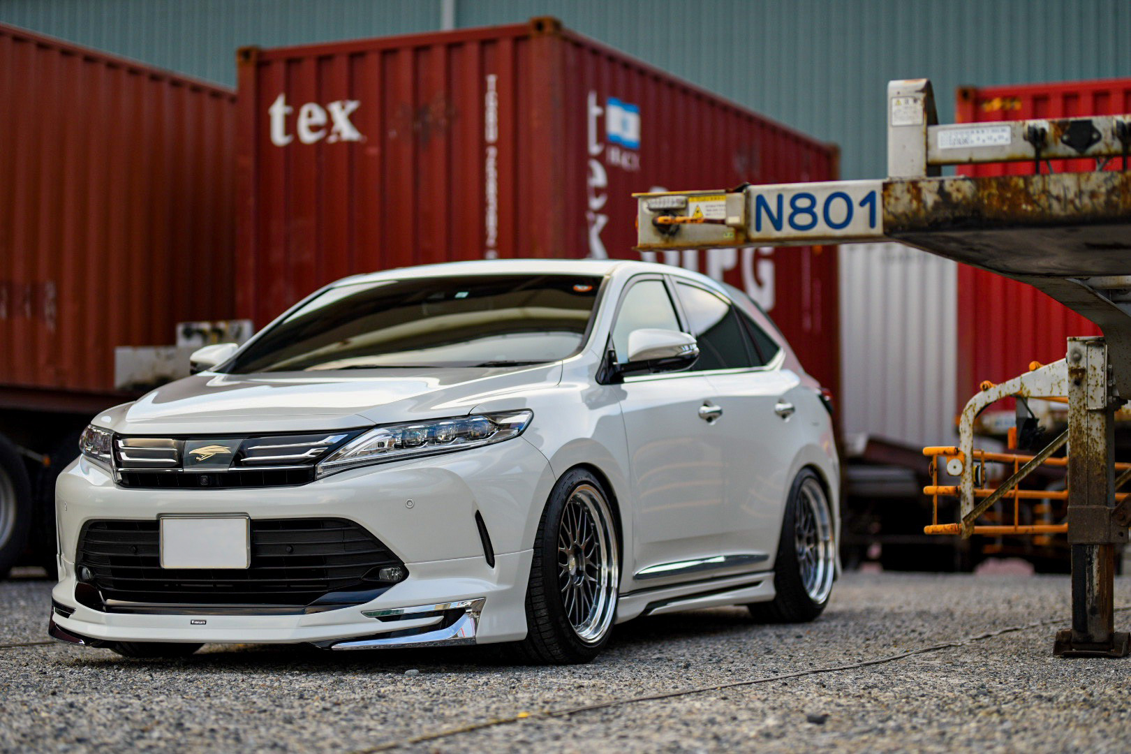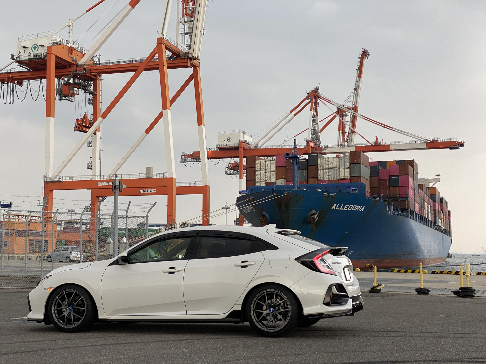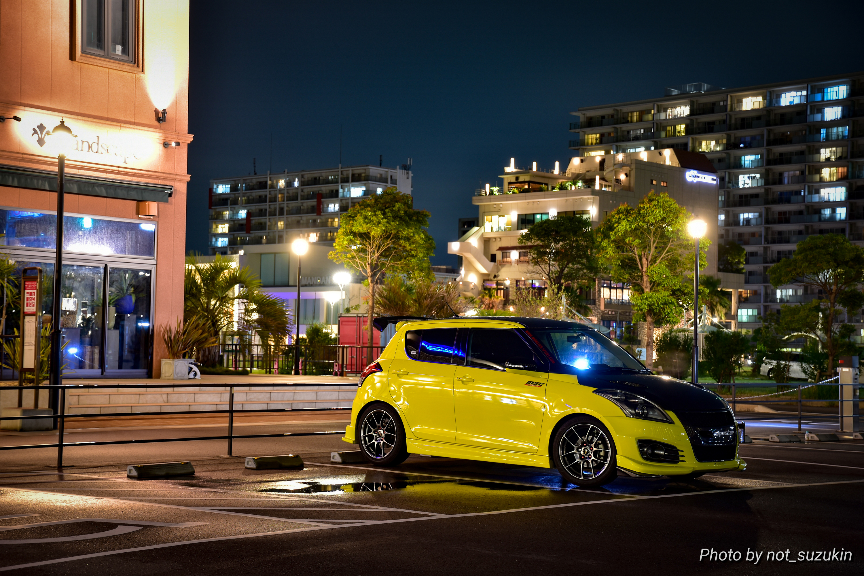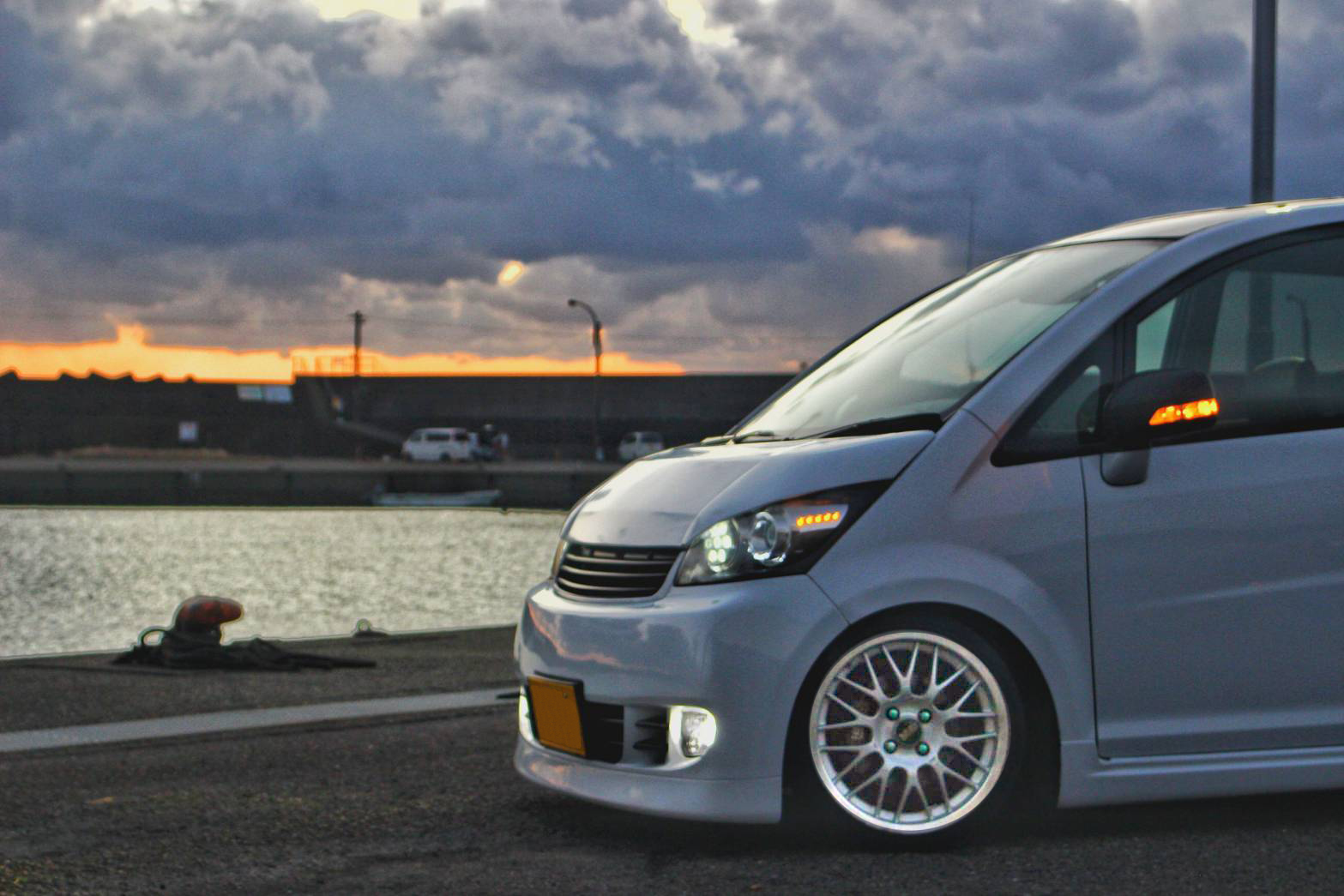 実家の和歌山の田辺市にある漁港での1枚です。ここの夕景が好きで、帰ると写真を撮りに行っています。敢えて全体を映さずボンネットやバンパーに掛かる夕日、そしてホイールを強調してみました。