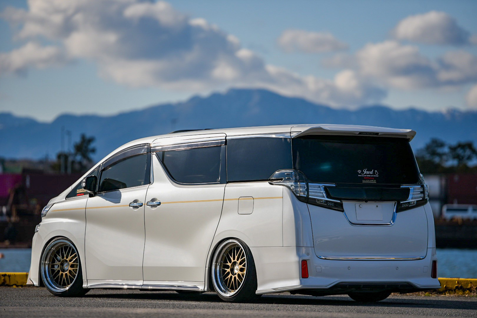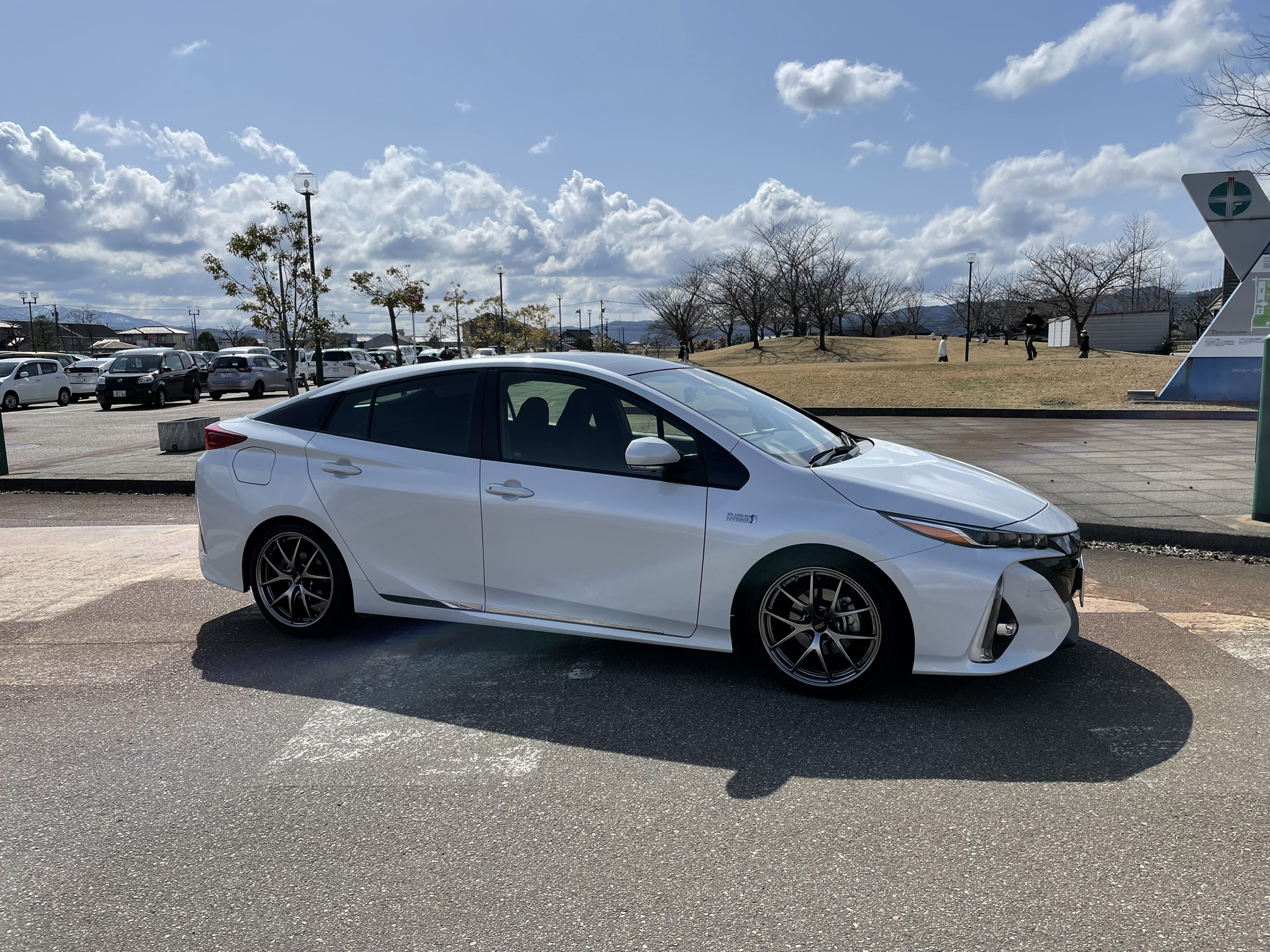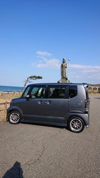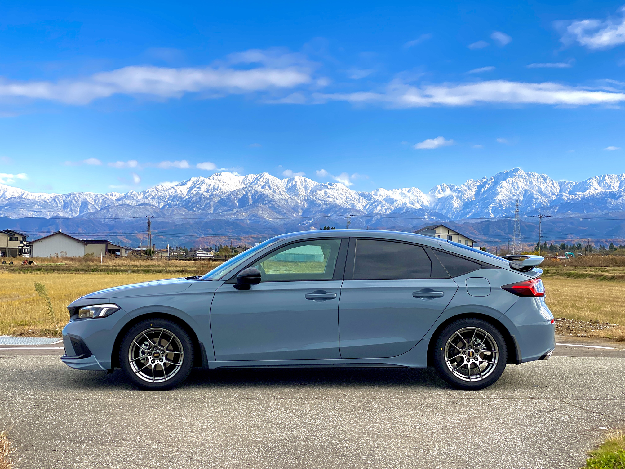 山がとっても綺麗だったので、車と山のコラボ写真を撮ってみました。ホイールと車もマッチしてると思います。