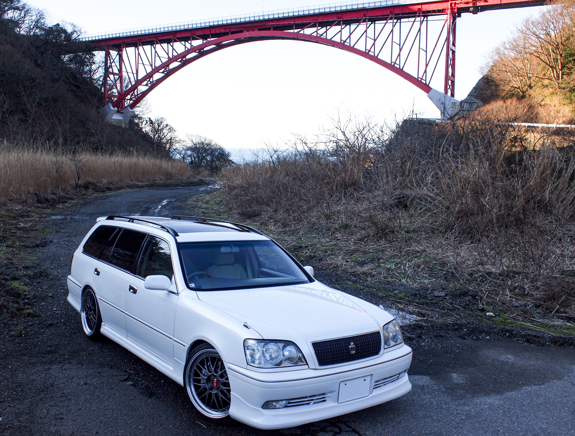日本海沿いの国道に架かるアーチ橋の下で撮影。早春の霞がかかった新潟の空模様の中、奥に見える日本海と赤いアーチ橋を背景にして撮ったこの1枚がお気に入りです。