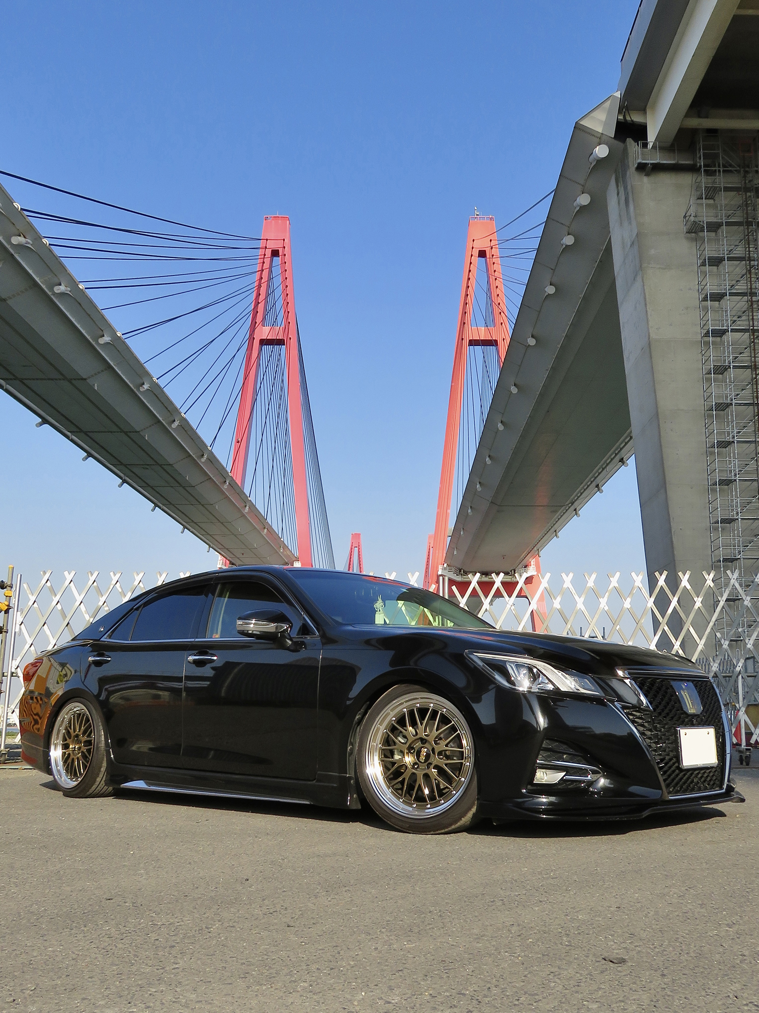 クラウンで初めての遠出として、愛知県に旅行に行き念願の「名港トリトン」で撮影してきた画像です。天気にも恵まれ青空なか、ダイヤモンドゴールドの光の当たり具合によって色々な顔を覗かせる特徴がフロントとリアの太陽の当たり具合で体感できる良い画像が撮れたと思っています。