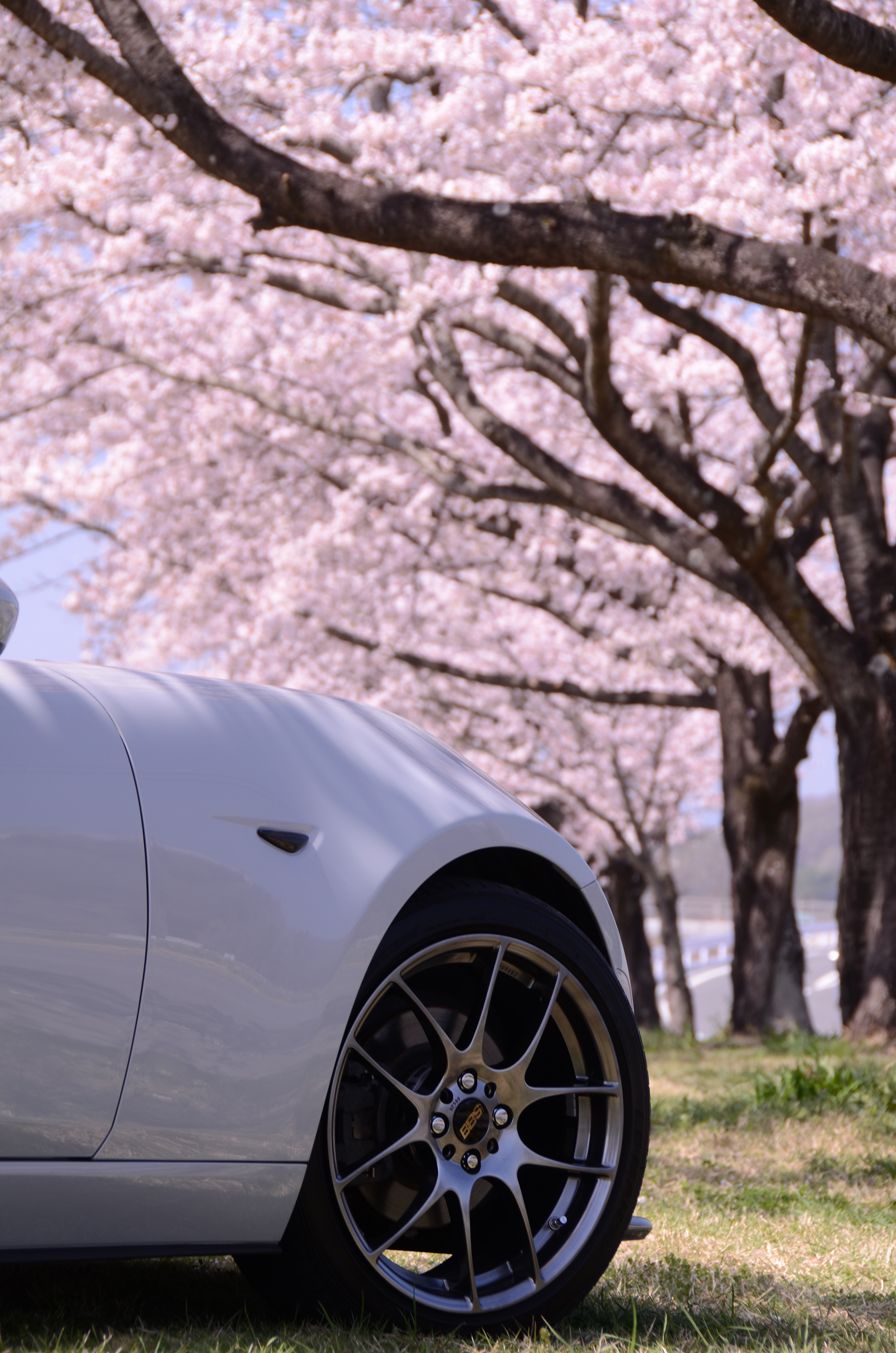 桜撮影にピッタリな近所の桜並木での撮影です。桜が満開で綺麗です。ホイールをBBSにしてから、ホイールをアピールした写真を多く撮るようになりました。大満足です。