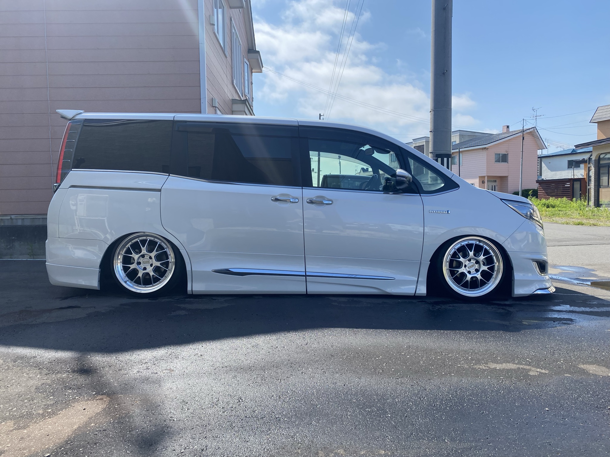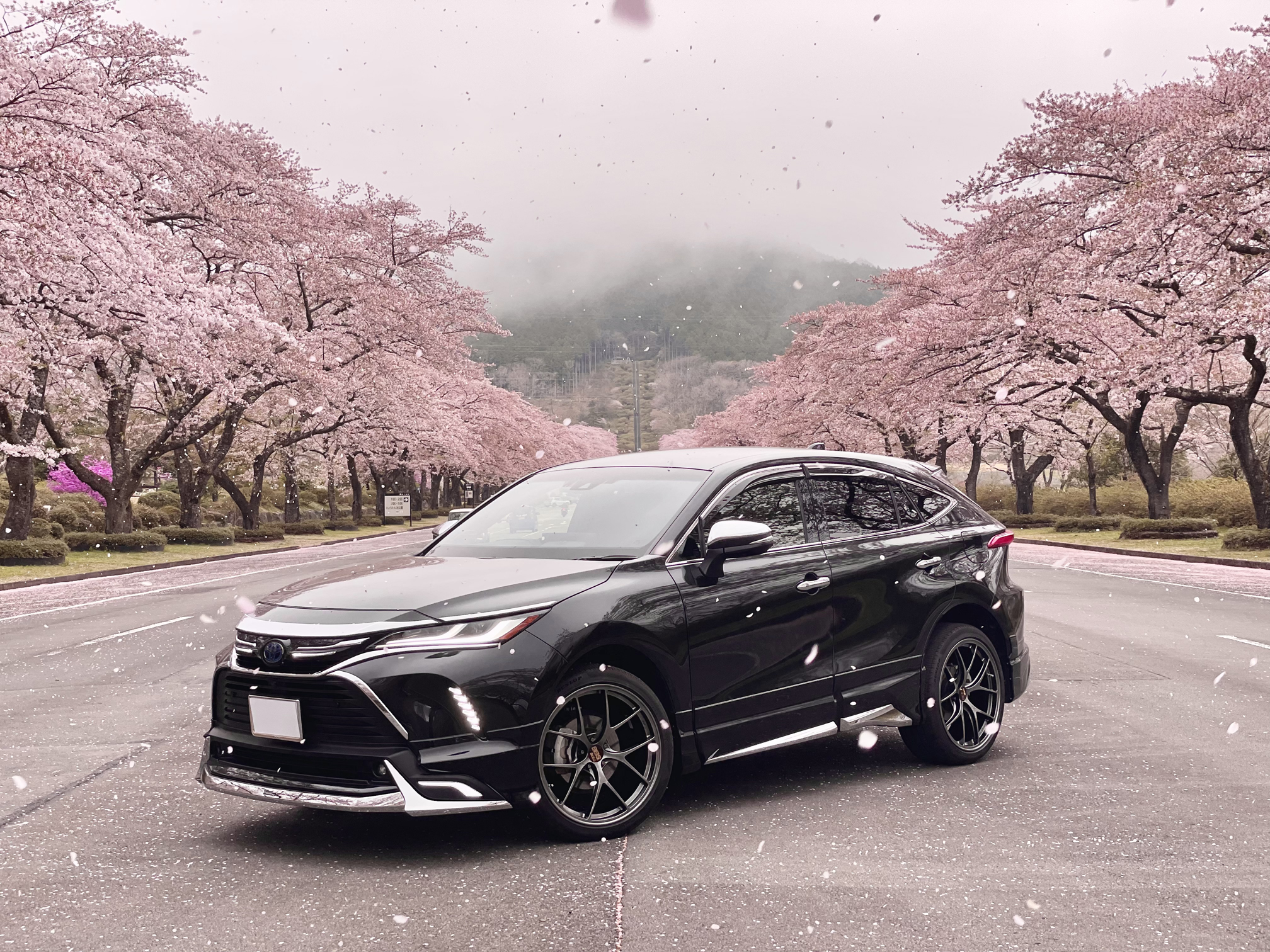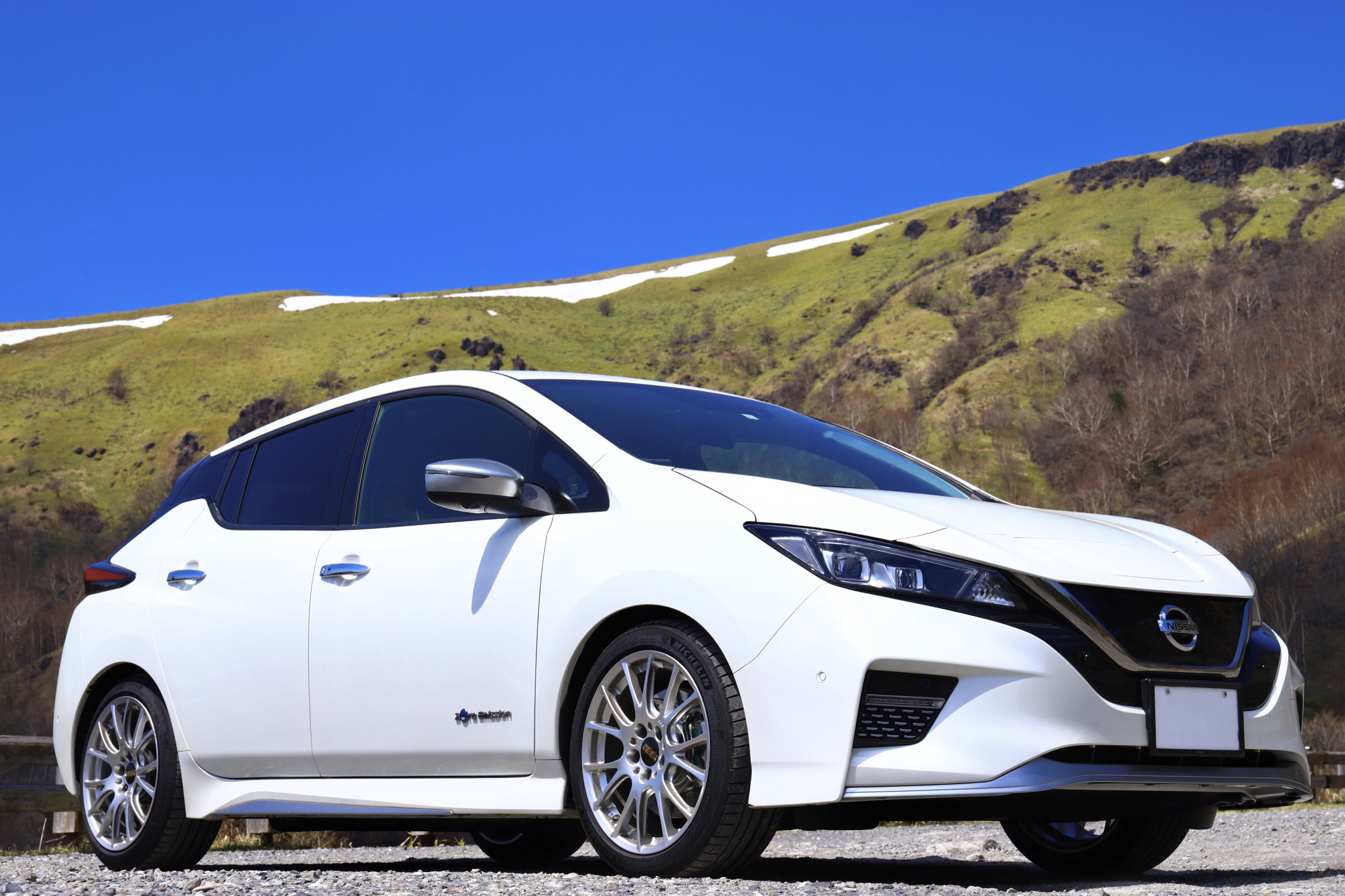 ビーナスラインへドライブへ行った際の一枚です。なかなか霧が晴れない朝でしたが一気に雲ひとつない天候となり思わずシャッターを切りました。道中峠道は道が荒れておりましたが、さすがBBS製品です。偏平タイヤにもかかわらずダメージひとつなく安心して走れました。電気自動車での登坂ということでバッテリーの心配もありましたが、かなり余力があり時代の進化を身をもって体感しました。