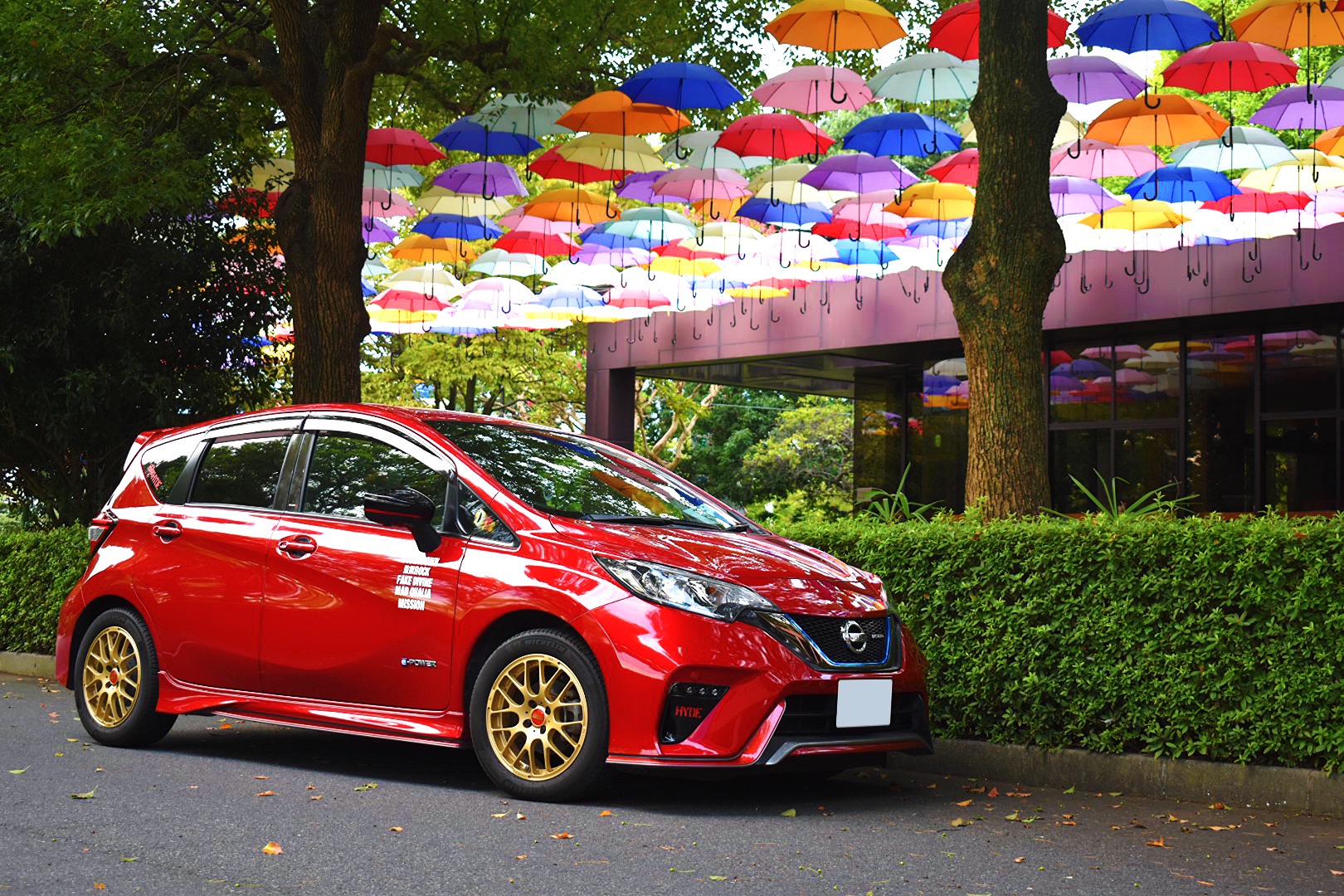 群馬県の館林市役所にある傘のトンネルです!!いろんな色がたくさんありとても綺麗でした。タイトルはフランス語で虹という意味のL'Arc-en-Cielにしました。