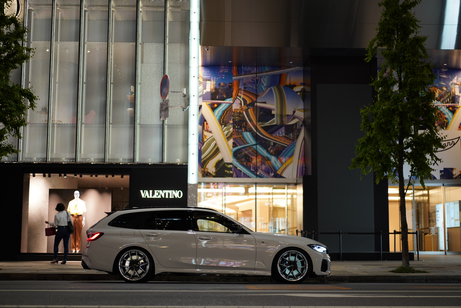 早朝の神戸元町居留地、お洒落なブランドのお店が沢山ある中で、とても絵になるGUCCI前で撮ってみました。GUCCI の建物の色合いとS3のグレイシアホワイトとBBSのブラックダイヤカットが、とても良い感じで撮れました。