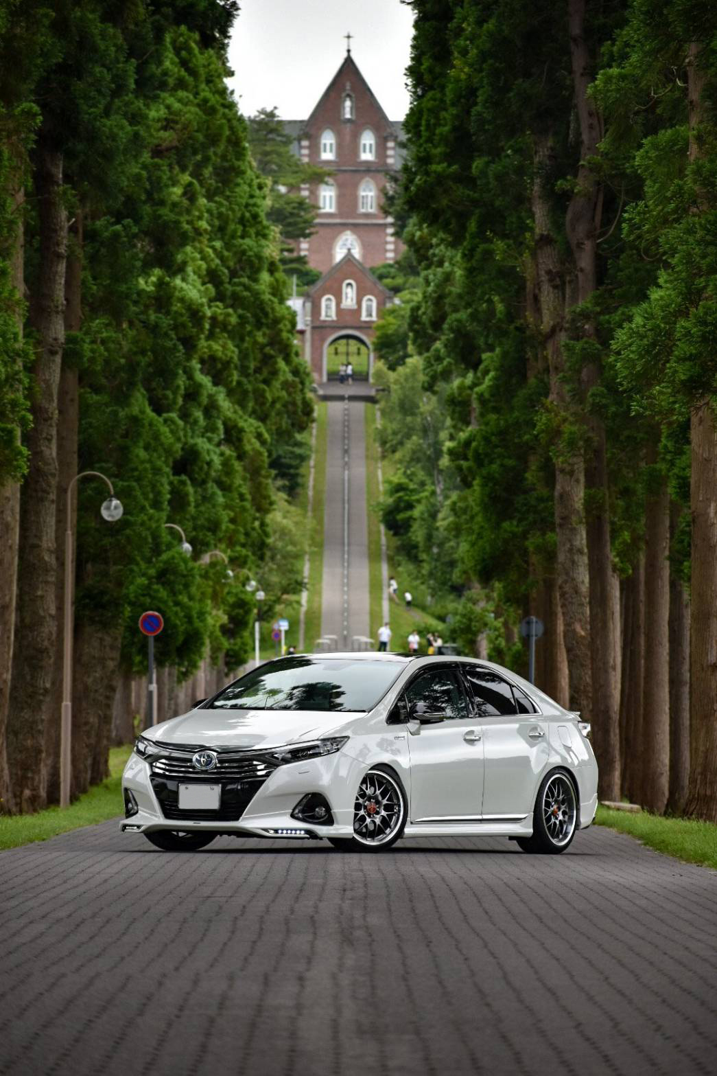 函館にあるトラピスチヌ修道院をバックに撮りました。風景と愛車を撮影するのが趣味で、全道あちこちに行っています。ここでの一枚は最高なショットとなりました。とてもお気に入りの一枚です。ホイールサイズは19インチ F 8.5Jオフセット+43 R 9.5Jオフセット+45です。